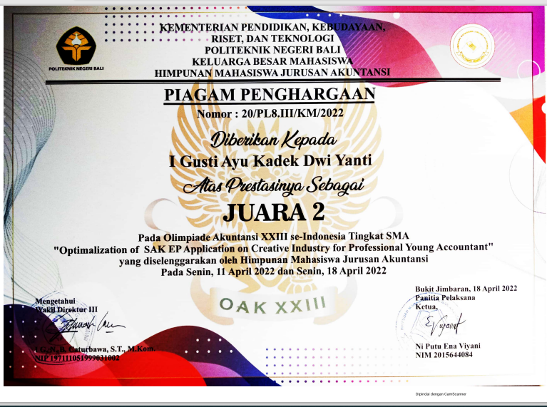 Olimpiade Akuntansi XXIII se-Indonesia Tingkat SMA Oleh Himpunan Mahasiswa Jurusan Akuntansi